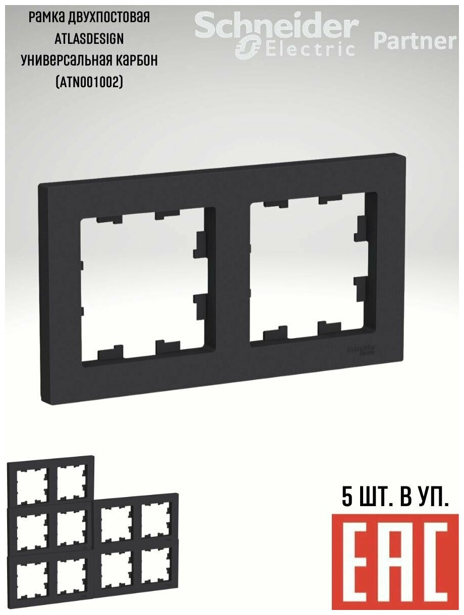 Розетки Рамка 2-постовая для розеток и выключателей Черная (карбон) AtlasDesign (Атлас Дизайн) Schneider Electric ATN001002 5шт