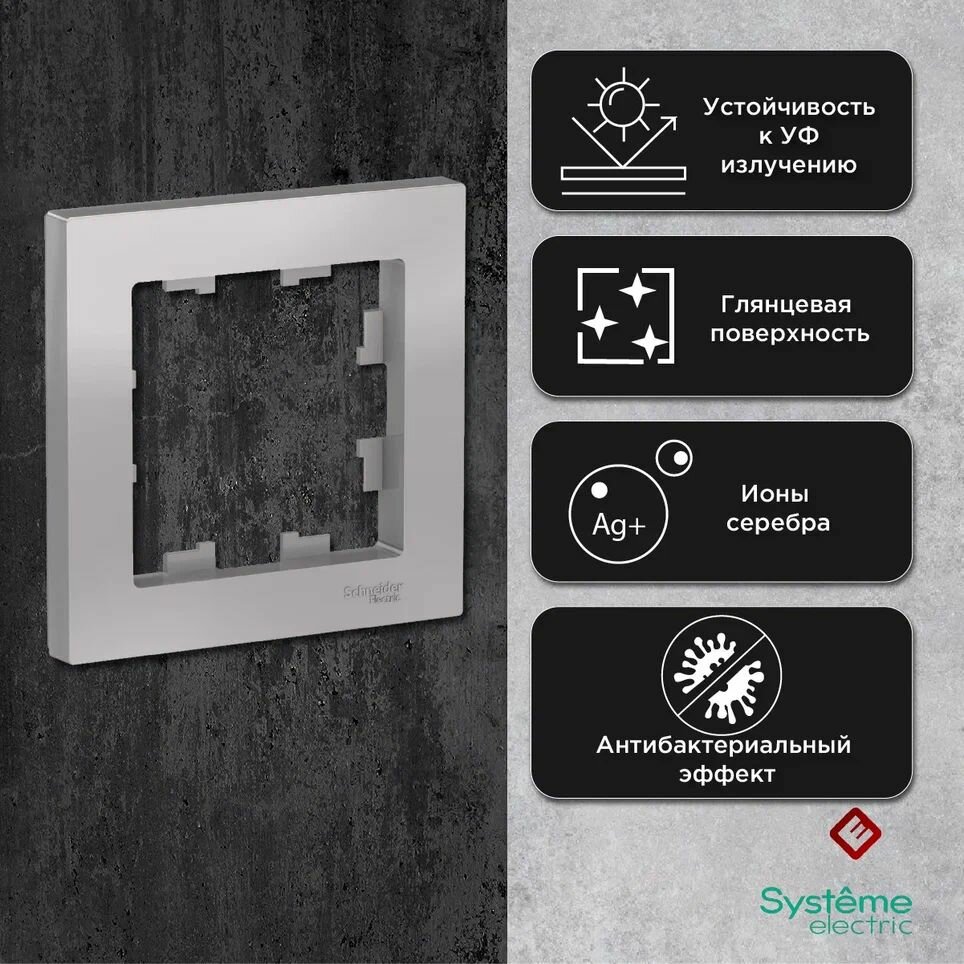 Розетки Рамка для розеток и выключателей однопостовая (Алюминий), Schneider Electric AtlasDesign