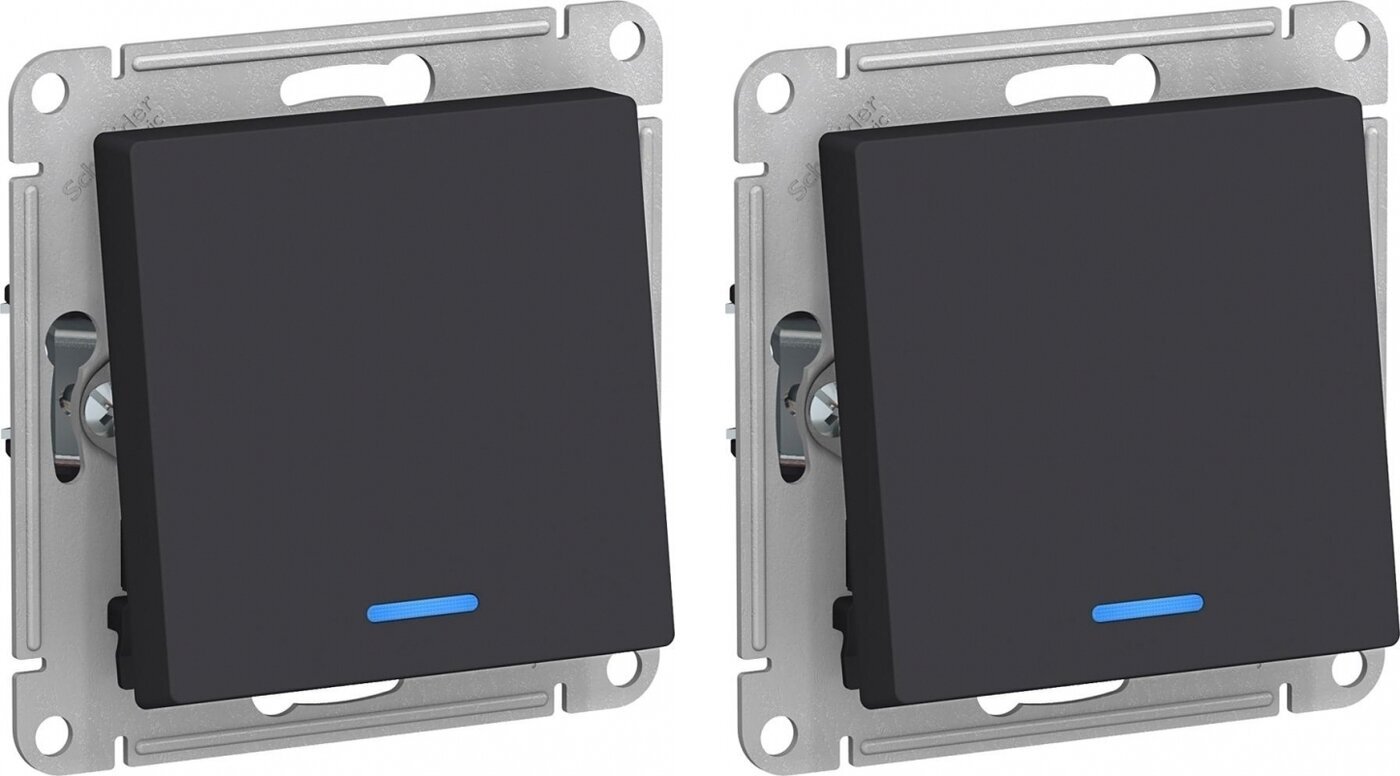 Выключатели Переключатель/выключатель 2 шт. проходной AtlasDesign 10А одноклавишный с подсветкой Schneider Electric/Systeme Electric механизм скрытая установка карбон ATN001063