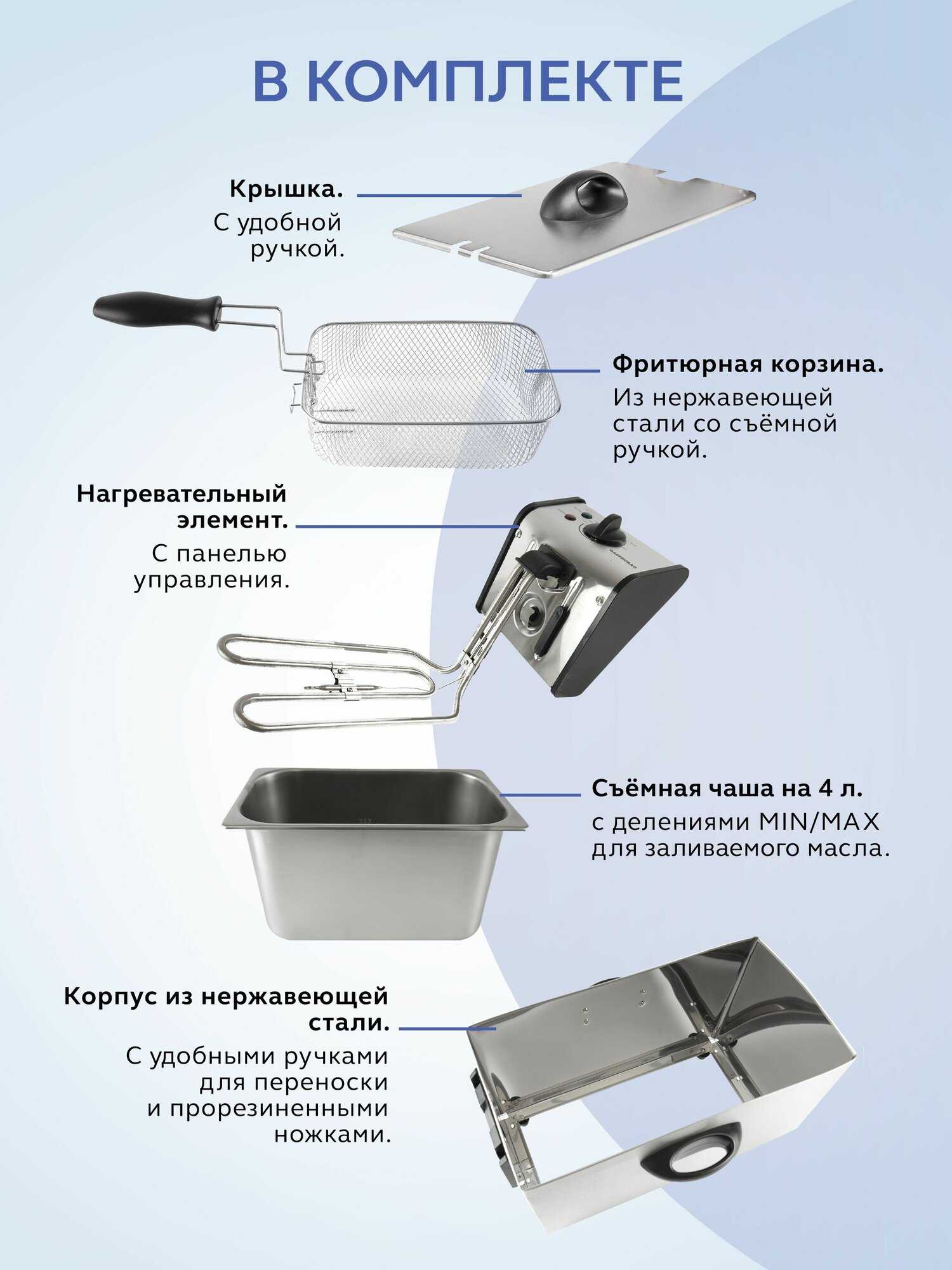 Фритюрница Фритюрница электрическая для кухни GASTRORAG CZG40X с большой съемной чашей 4 л, настольная электрофритюрница для картофеля фри, для картошки, для всей семьи