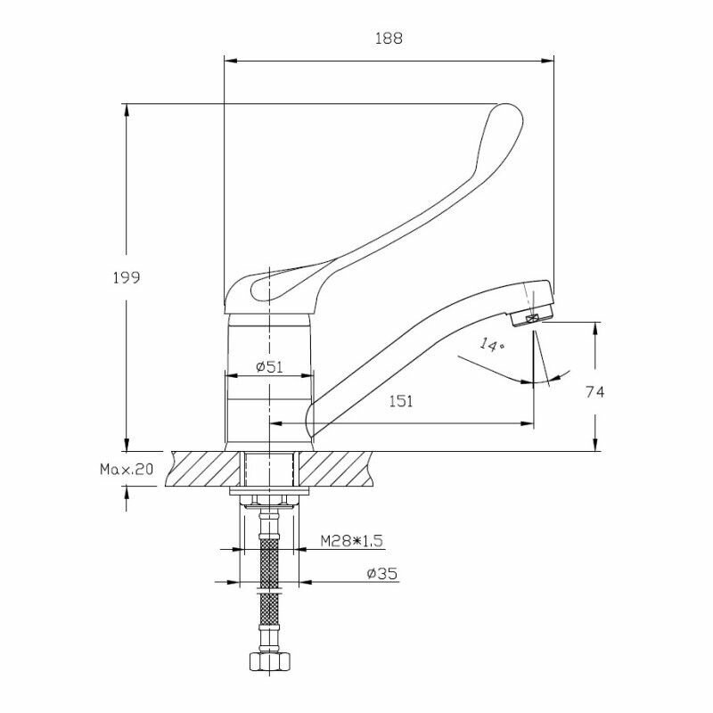 Смеситель Haiba HB4554-2 для кухни с хирургической ручкой, хром