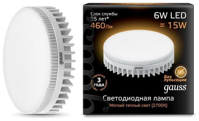 Светодиодная лампа Gauss LD108008106 6W эквивалент 15W 2700K 460Лм GX53