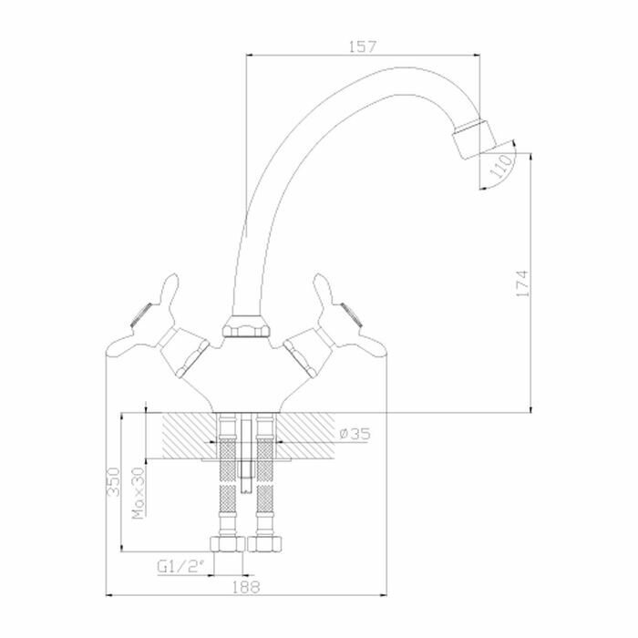 ROSSINKA Q02-71, Смеситель для кухонной мойки двуручный с поворотным изливом 260 мм, хром 3 840 ₽ Подробнее