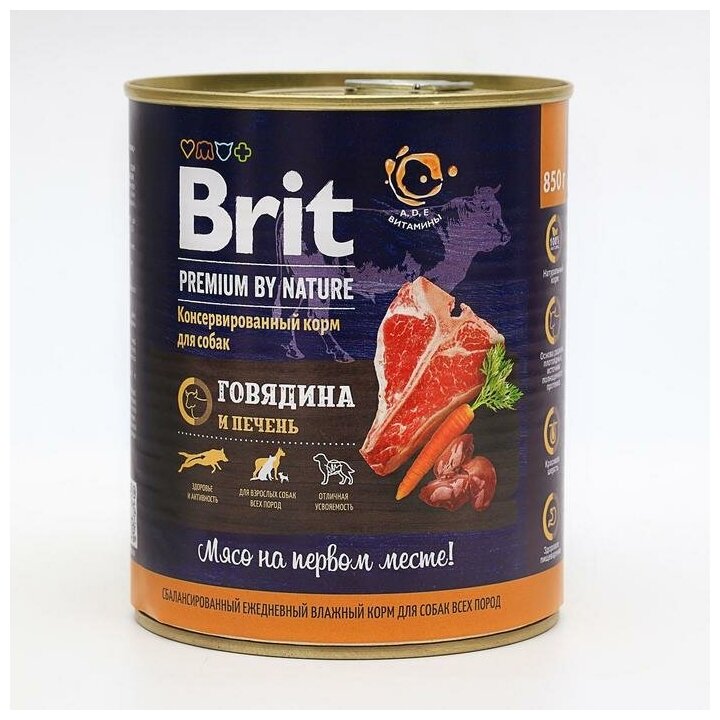 Brit Premium by Nature полнорационный влажный корм для собак, фарш из говядины с печенью, в консервах - 850 г х 6 шт