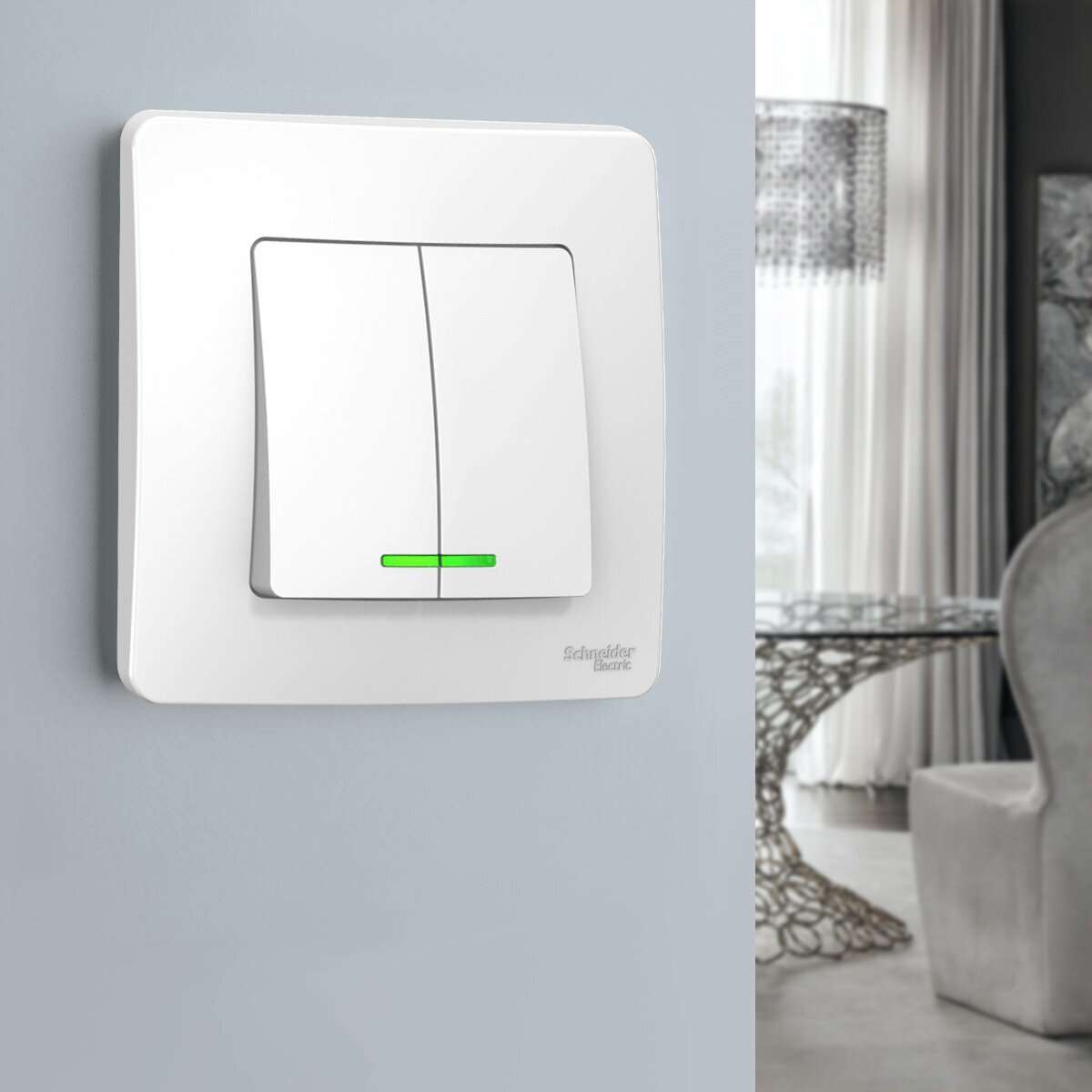 Выключатель внутренний SYSTEME ELECTRIC (SCHNEIDER ELECTRIC) SCHNEIDER ELECTRIC 2-клавишный с подсветкой, 10А, 250B SE Blanca Белый, BLNVS010511