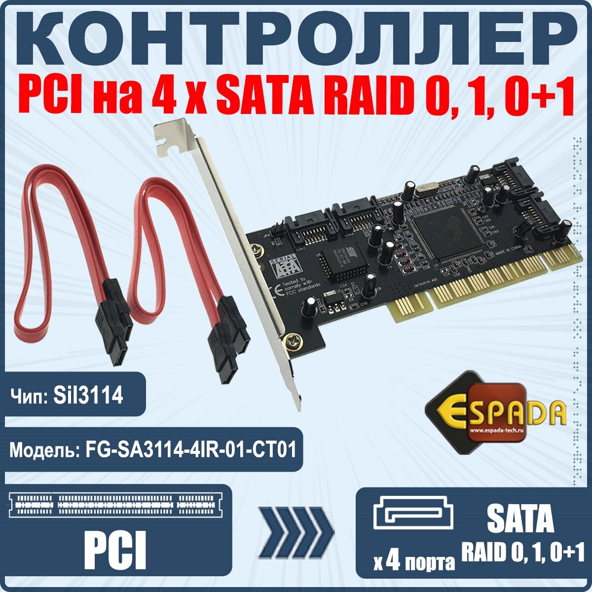 PCI-контроллеры Контроллер PCI Espada Fg-sa3114-4ir, Sata Raid Card .