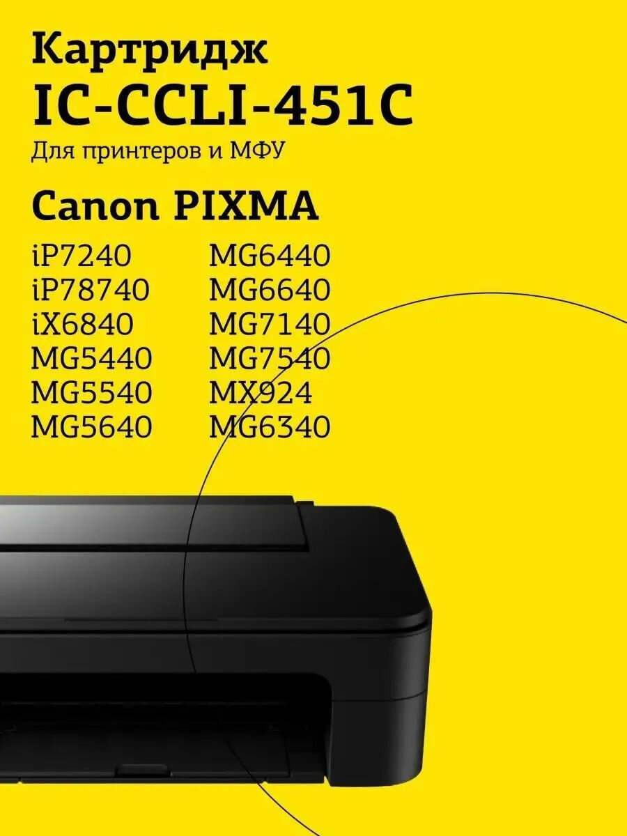 IC-CCLI-451C XL Картридж для Canon PIXMA iP7240, MG5440, 6340, MX924, голубой, с чипом