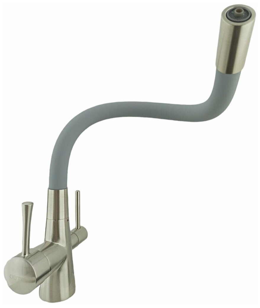 Смесители Латун. смеситель под фильтр с гиб. изливом, корпус смесителя сатин, излив серый Oute T60003BL-5