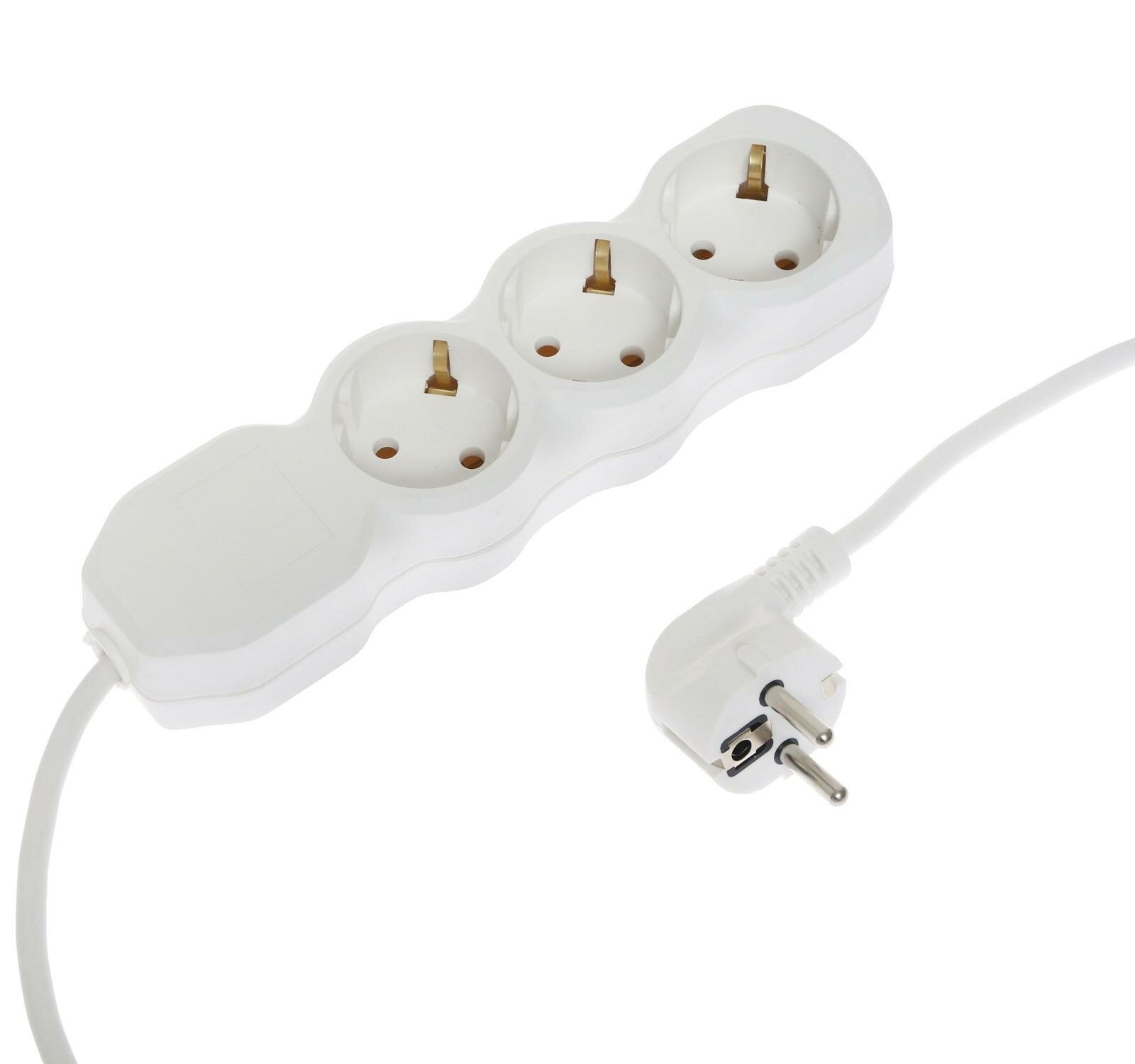 Удлинитель 3 розетки, 5 м, 6 А, 1300 Вт, ШВВП 2х0.5 мм2, без з/к, белый 5350219