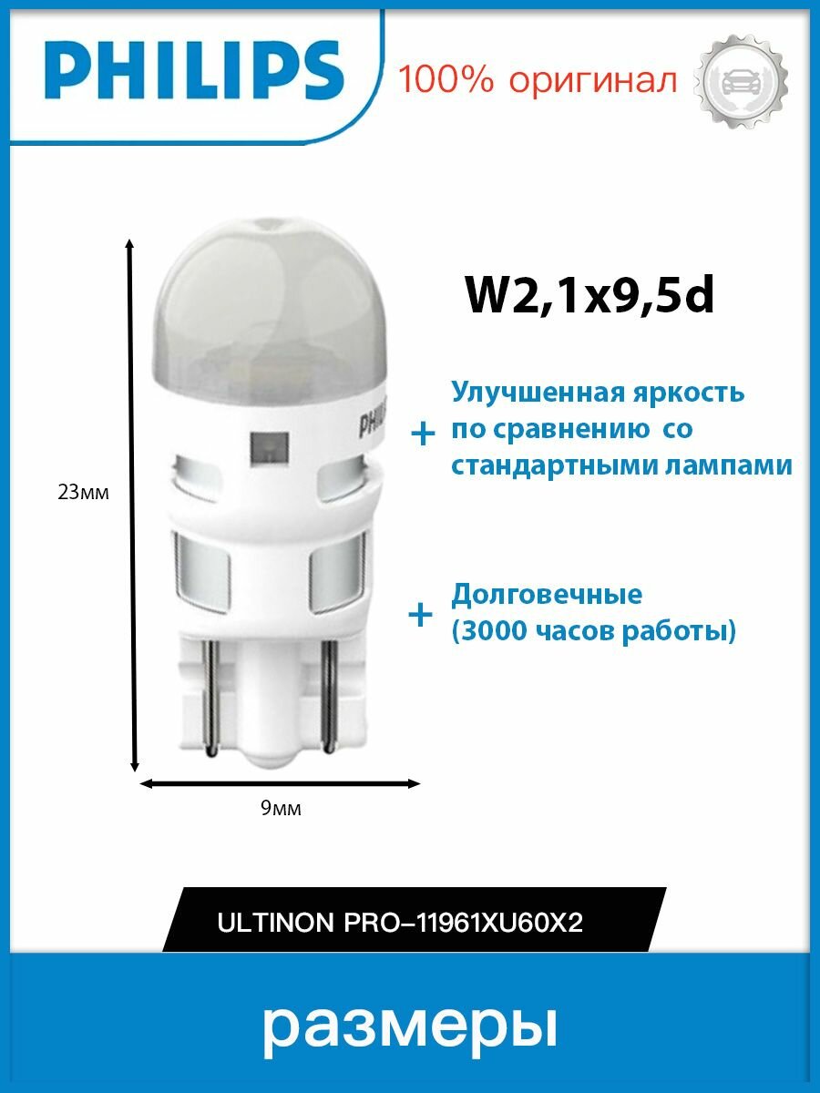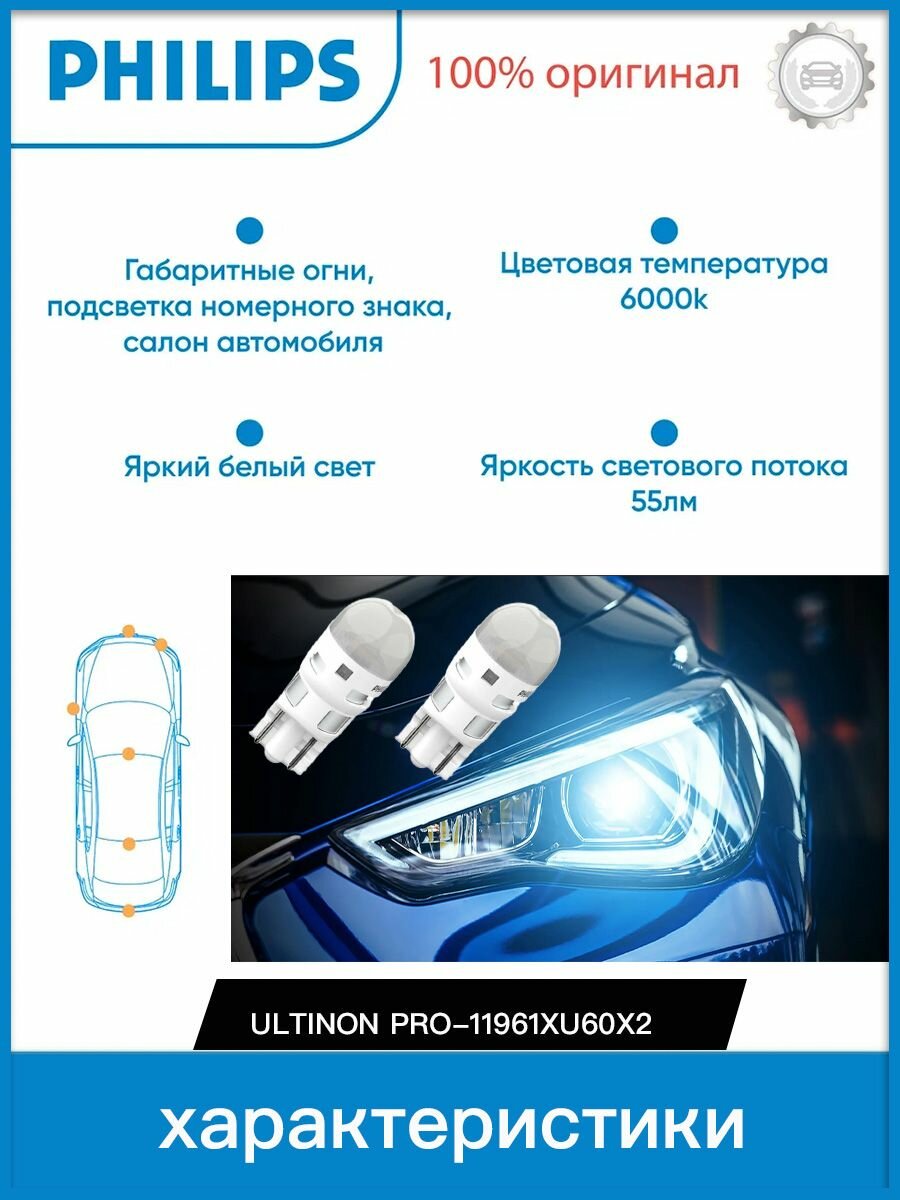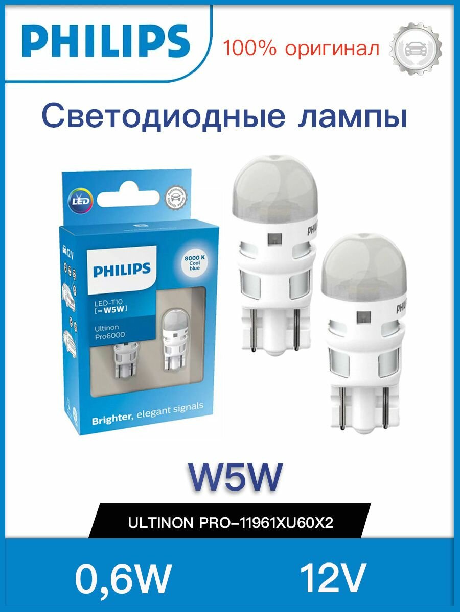Автолампа Лампа W5W 12V 0,6W (W2,1x9,5d) 8000K Ultinon Pro6000 SI (бл. 2шт) - 11961XU60X2