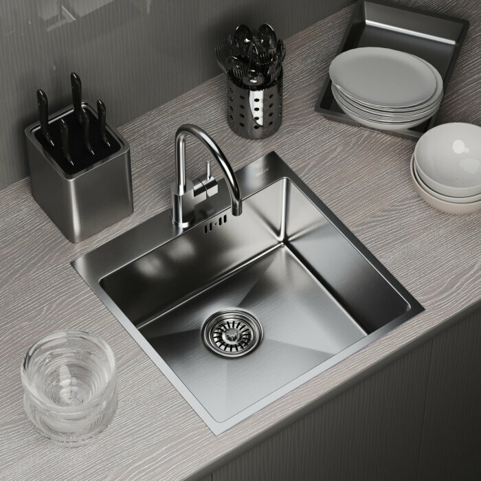 Кухонные мойки Мойка для кухни из нержавеющей стали MIXLINE PRO 50х50 с сифоном, серый сатин