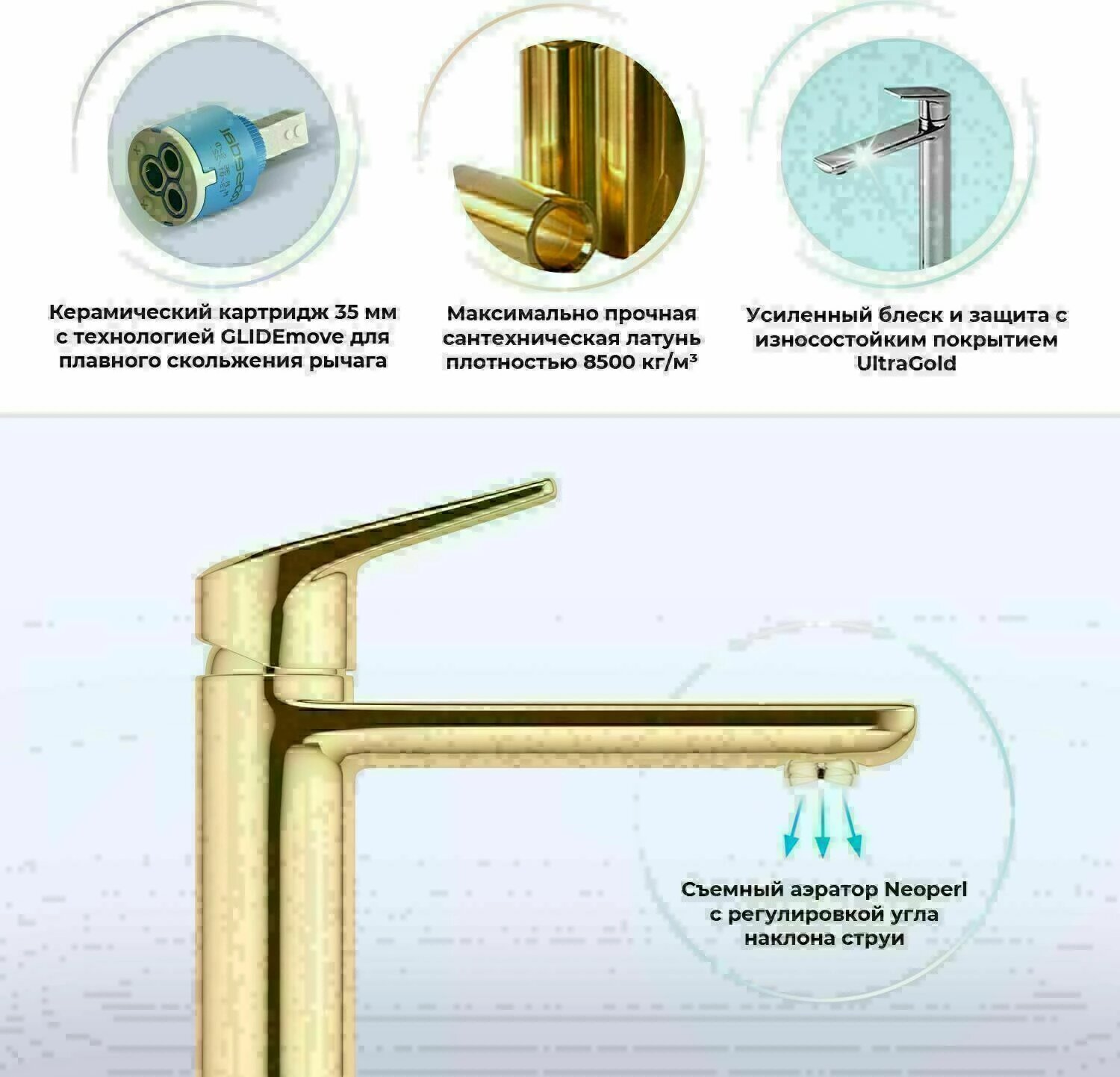 Высокий отдельностоящий смеситель для раковины (умывальника) на столешницу Wellsee ICON! for life 182308000, излив 238/150 мм (цвет золотой)
