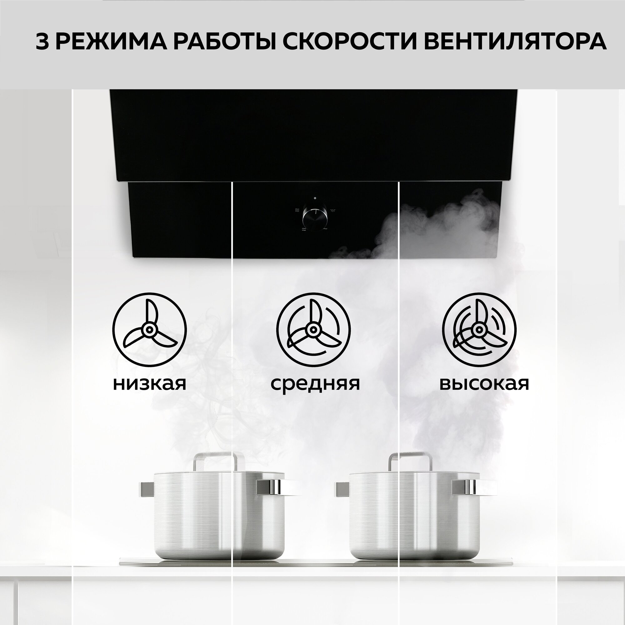 Вытяжки GFGRIL Вытяжка кухонная GF-HD200SB, 60 см, 2 стекла, 650 м3/h, 140 Вт, 3 скорости, цвет - черный