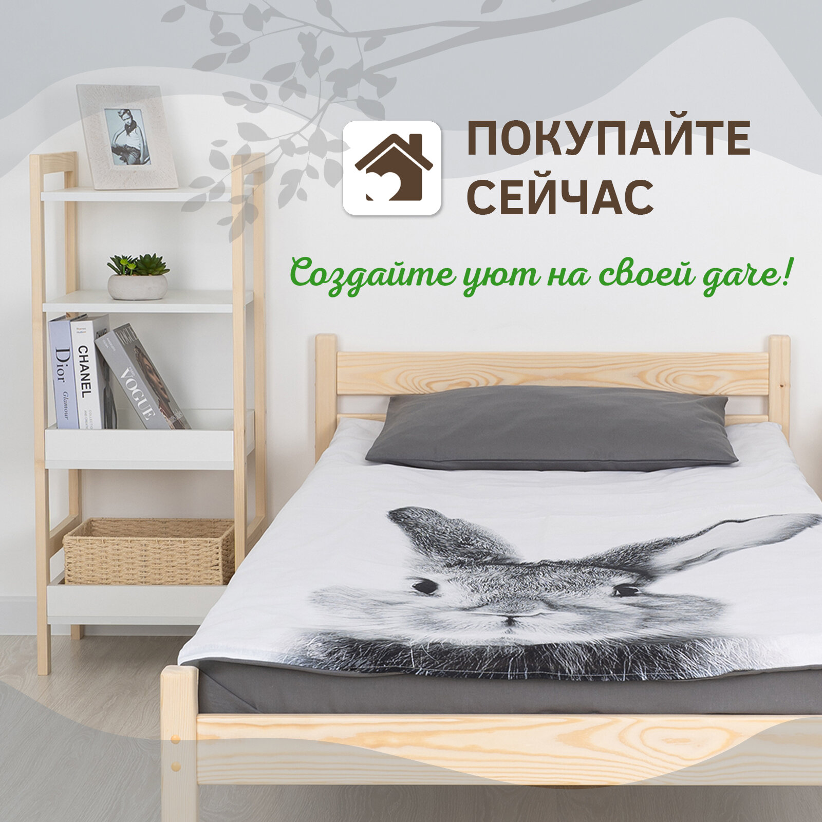 Кроватки Кровать односпальная 90*200см деревянная без покраски для дачи RM Маркет