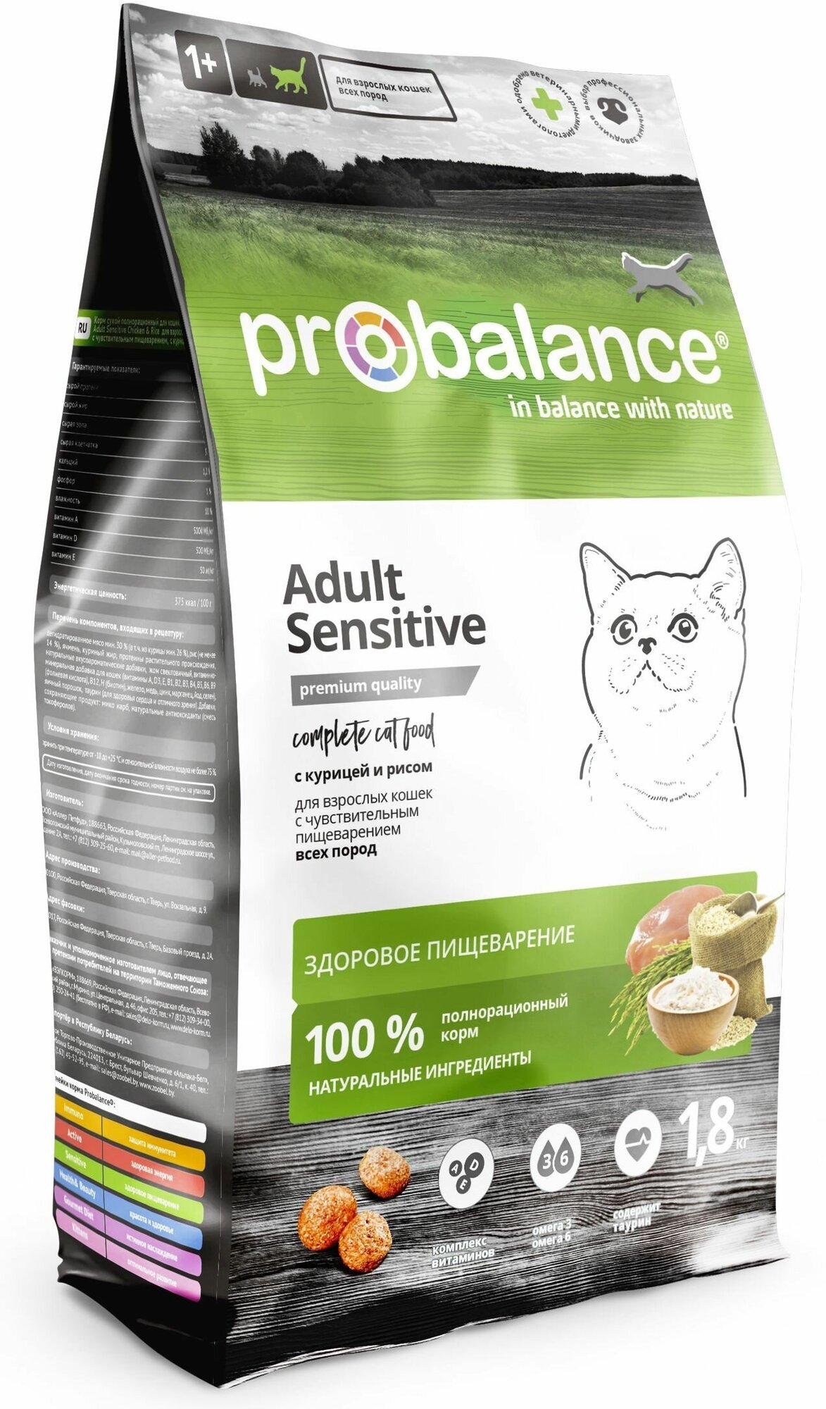 Корм ProBalance Sensitive для взрослых кошек с чувствительным пищеварением, с курицей и рисом, 1,8 кг