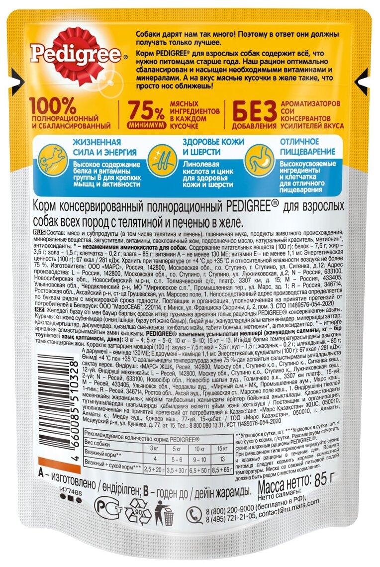 Pedigree Паучи для взрослых собак всех пород с телятиной и печенью в желе 85г 10222593 0,085 кг 43501 (2 шт)