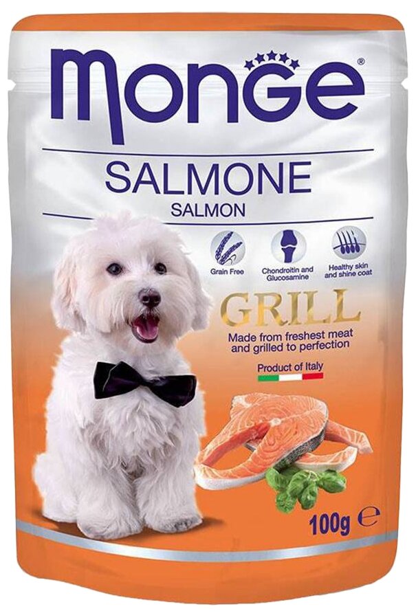 Влажный корм для взрослых собак Monge GRILL POUCH SALMONE, с лососем, 100 г, 1 шт.
