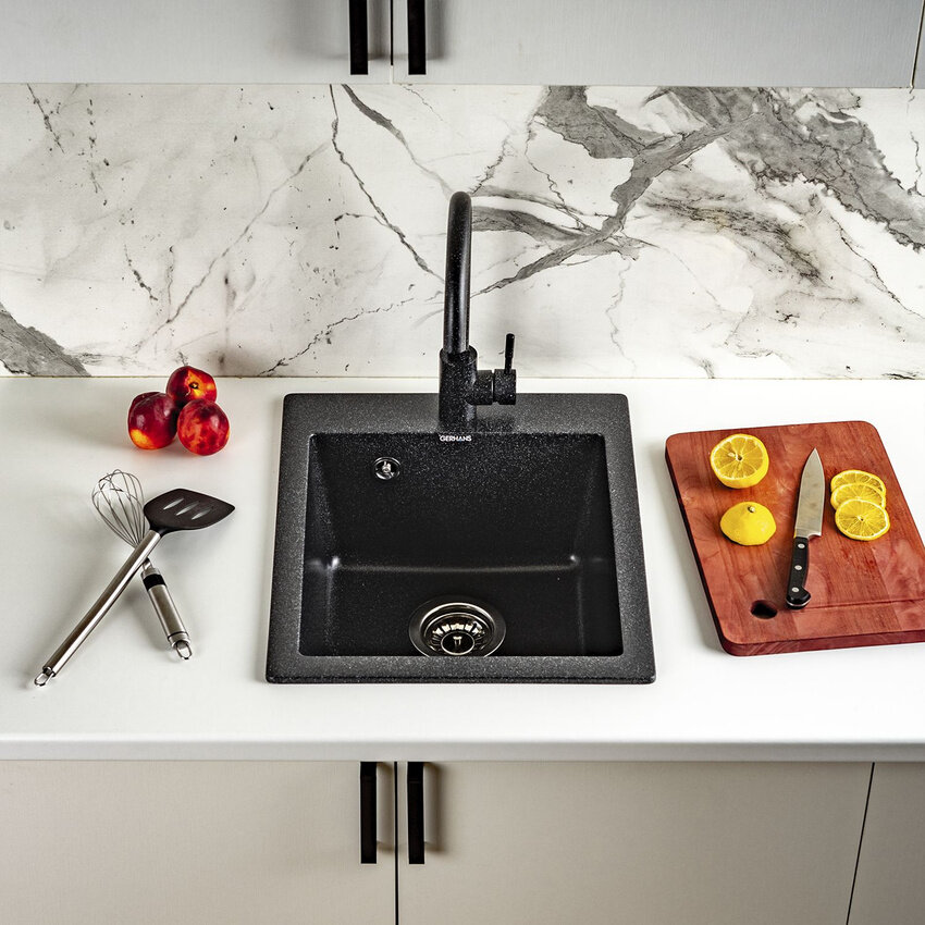 Кухонные мойки Комплект мойка для кухни Gerhans A10-22 Черная со смесителем W4998-3-22