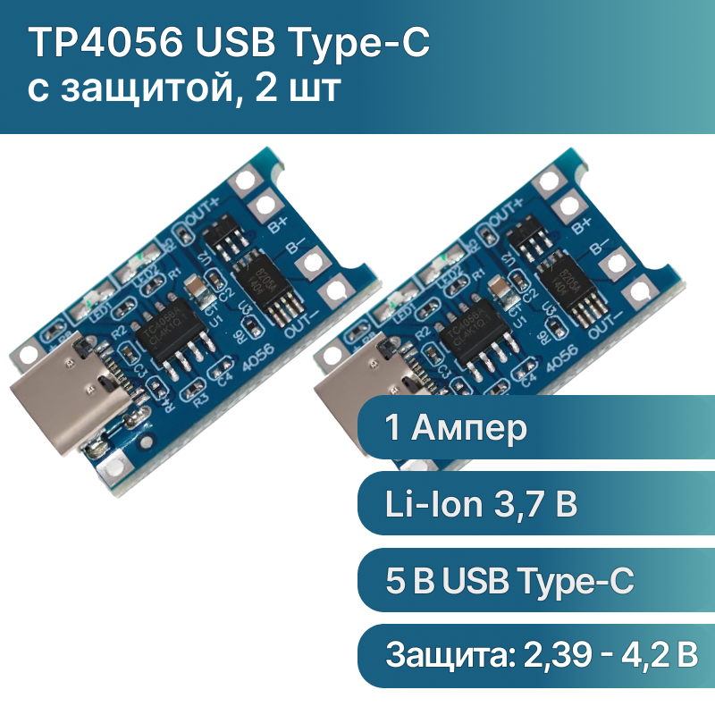 Модуль заряда TP4056 Type-C USB с защитой (2 шт.) 231 ₽ Подробнее