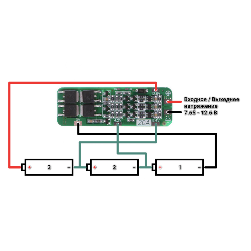 Зарядки аккумуляторных батареек BMS 3S 20A модуль зарядки и балансировки Li-Ion аккумуляторов 12.6 V (с защитой от перезарядки)