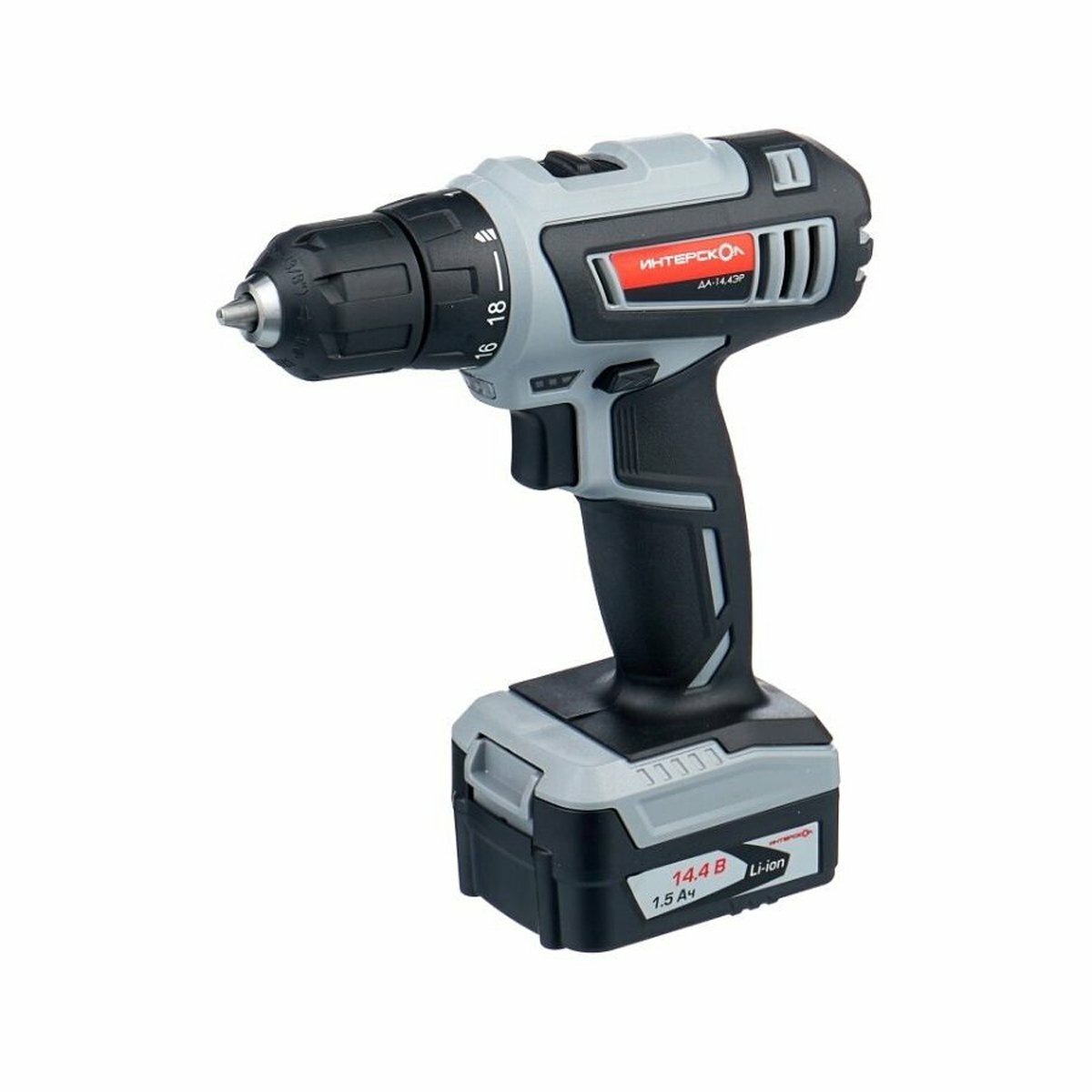 Дрель-шуруповерт аккумуляторная ИНТЕРСКОЛ ДА-14,4ЭР, 14 Вольт, 1,5 Ач, Li-lon, 15 Нм, 2акк