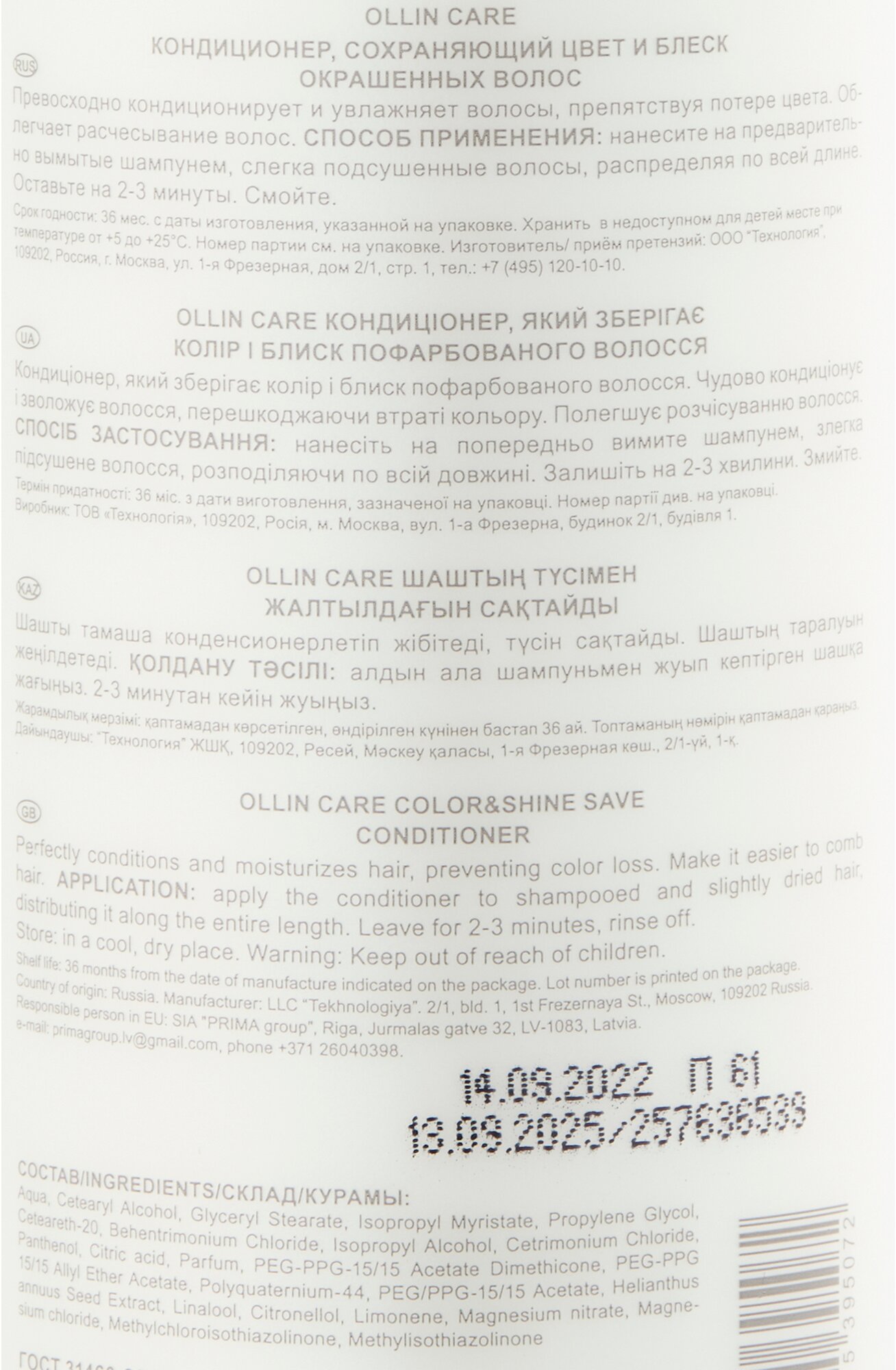 OLLIN CARE Кондиционер сохраняющий цвет и блеск окрашенных волос 200мл