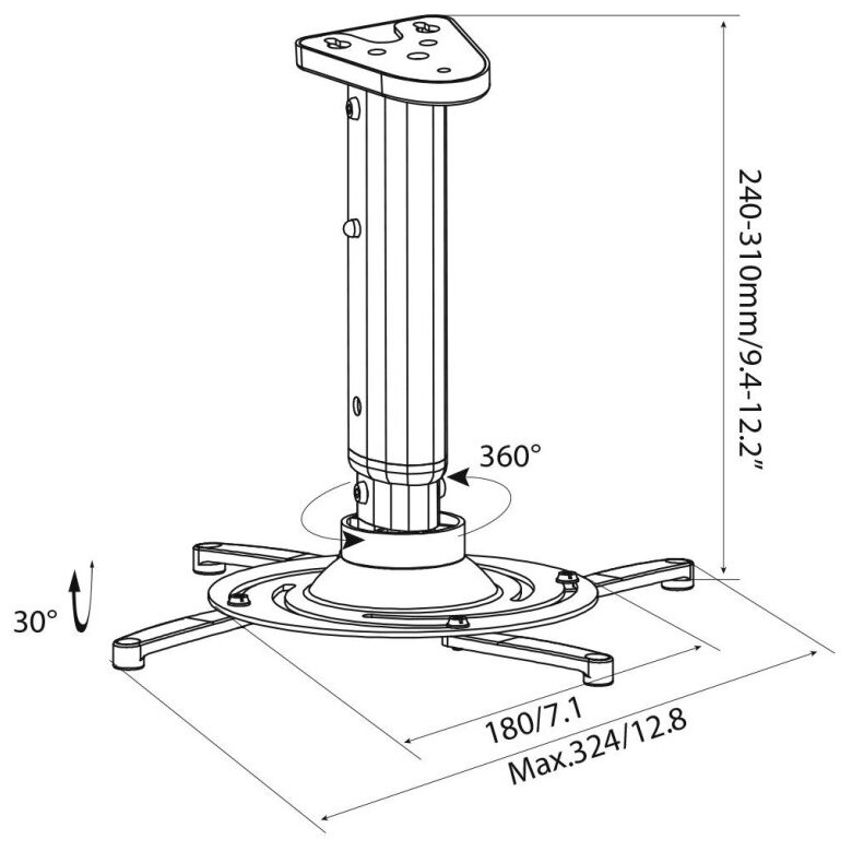 Кронштейн для проектора Cactus CS-VM-PR05M-BK чер потолочный поворот и наклон мин 24 макс 31см (CS-VM-PR05M-BK)