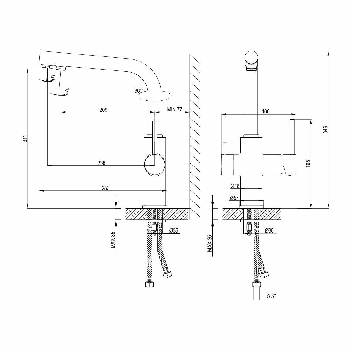 | Диаметр отверстий для установки | 35 мм |
