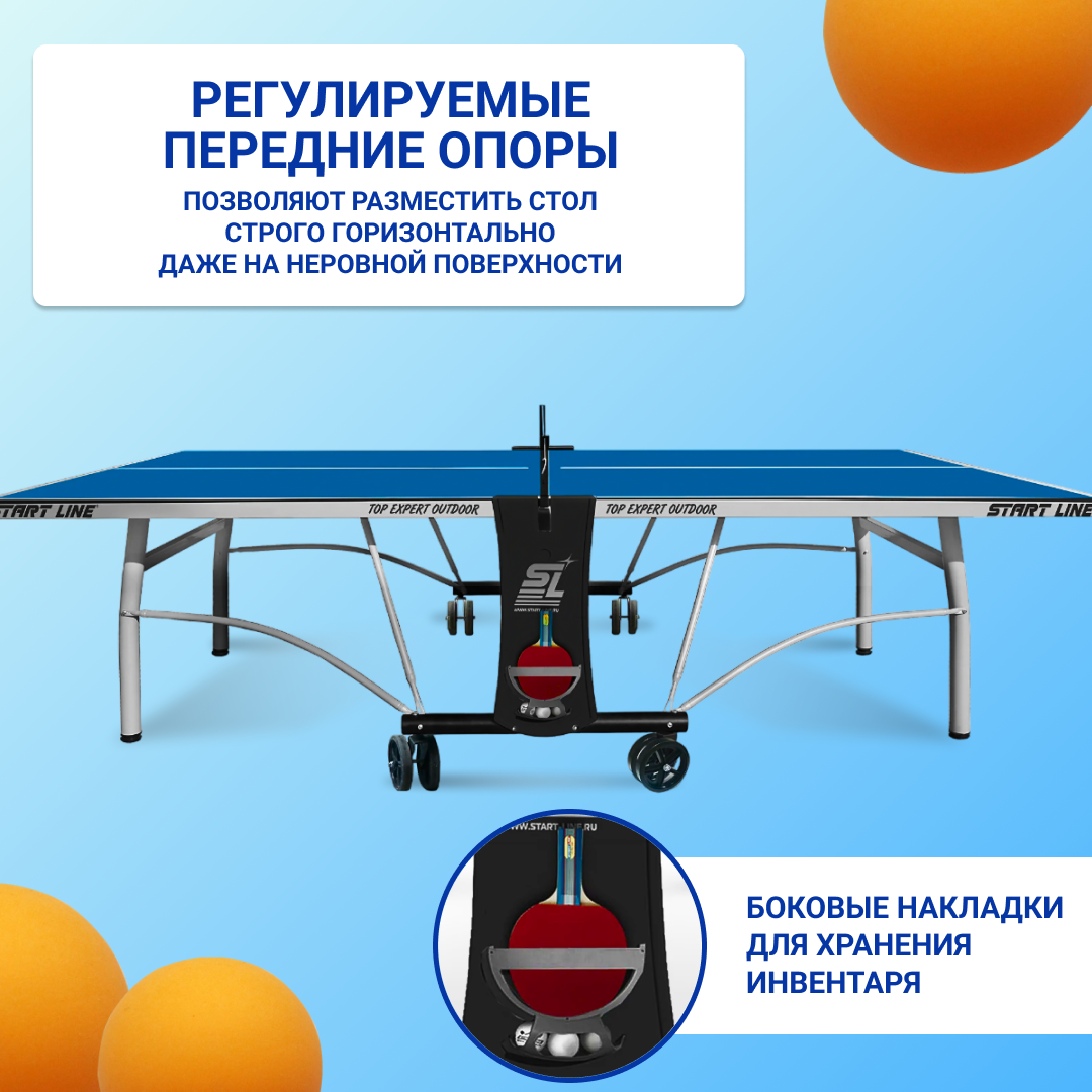Теннисные столы Теннисный стол всепогодный, для улицы, дачи, Start Line Top Expert Outdoor 6 профессиональный, с встроенной сеткой и колесами