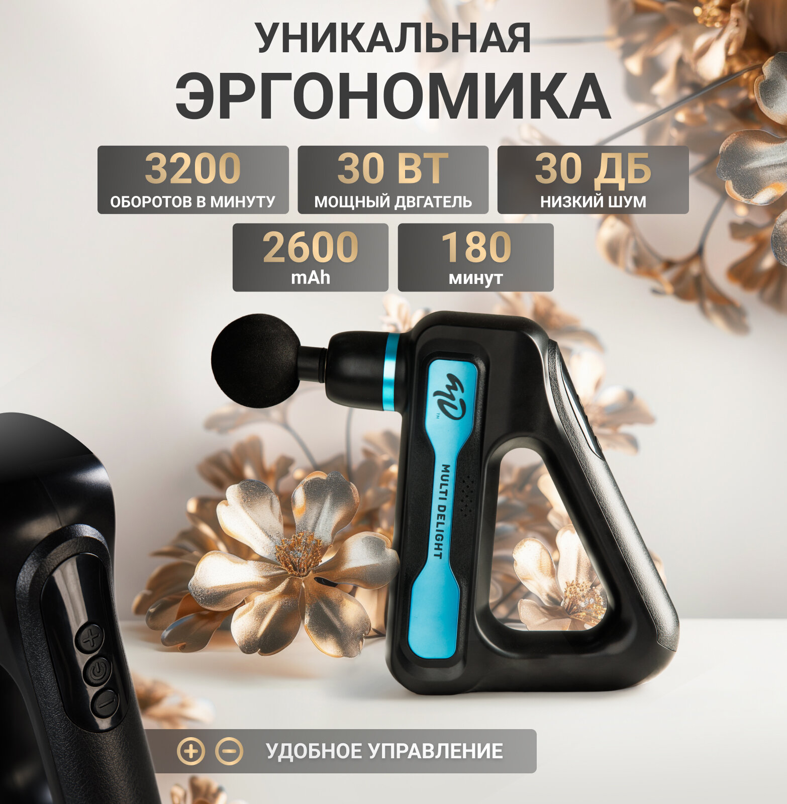 Массажеры для тела Перкуссионный электрический массажер для тела, шеи, плеч, спины, рук и ног, Multi Delight, Массажный ударный антицеллюлитный пистолет