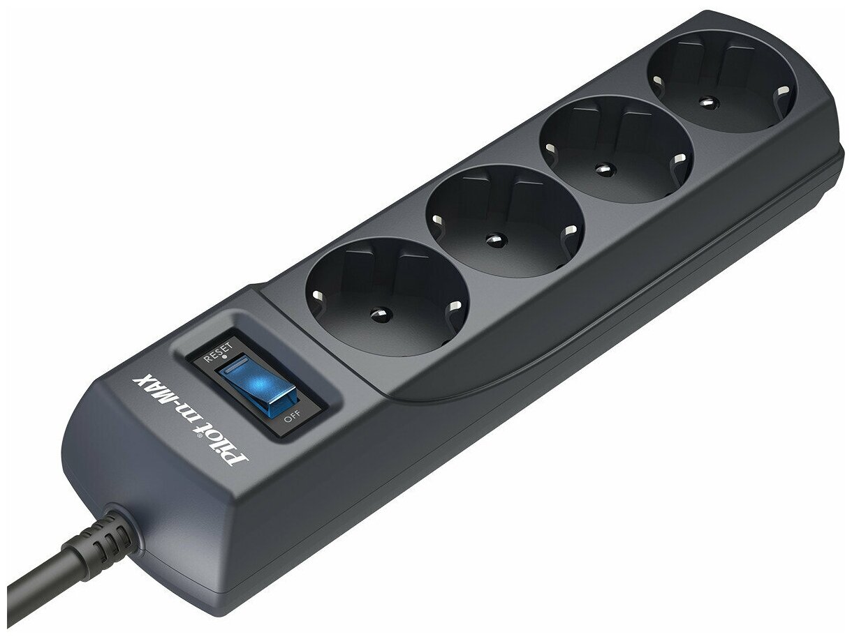 Сетевой фильтр PILOT m-MAX, 4-розетки, 3м, черный