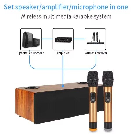 Аудиосистемы Акустическая система с караоке для телевизора и вечеринок, 120 Вт, два беспроводных микрофона
