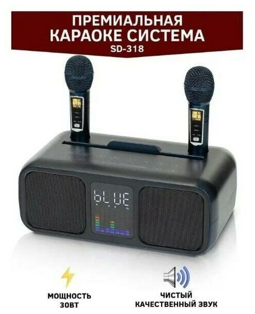 Аудиоресиверы REXUS SD-318 Dark Blue - беспроводная караоке система, 2 радиомикрофона, USB, Bluetooth, оптический вход
