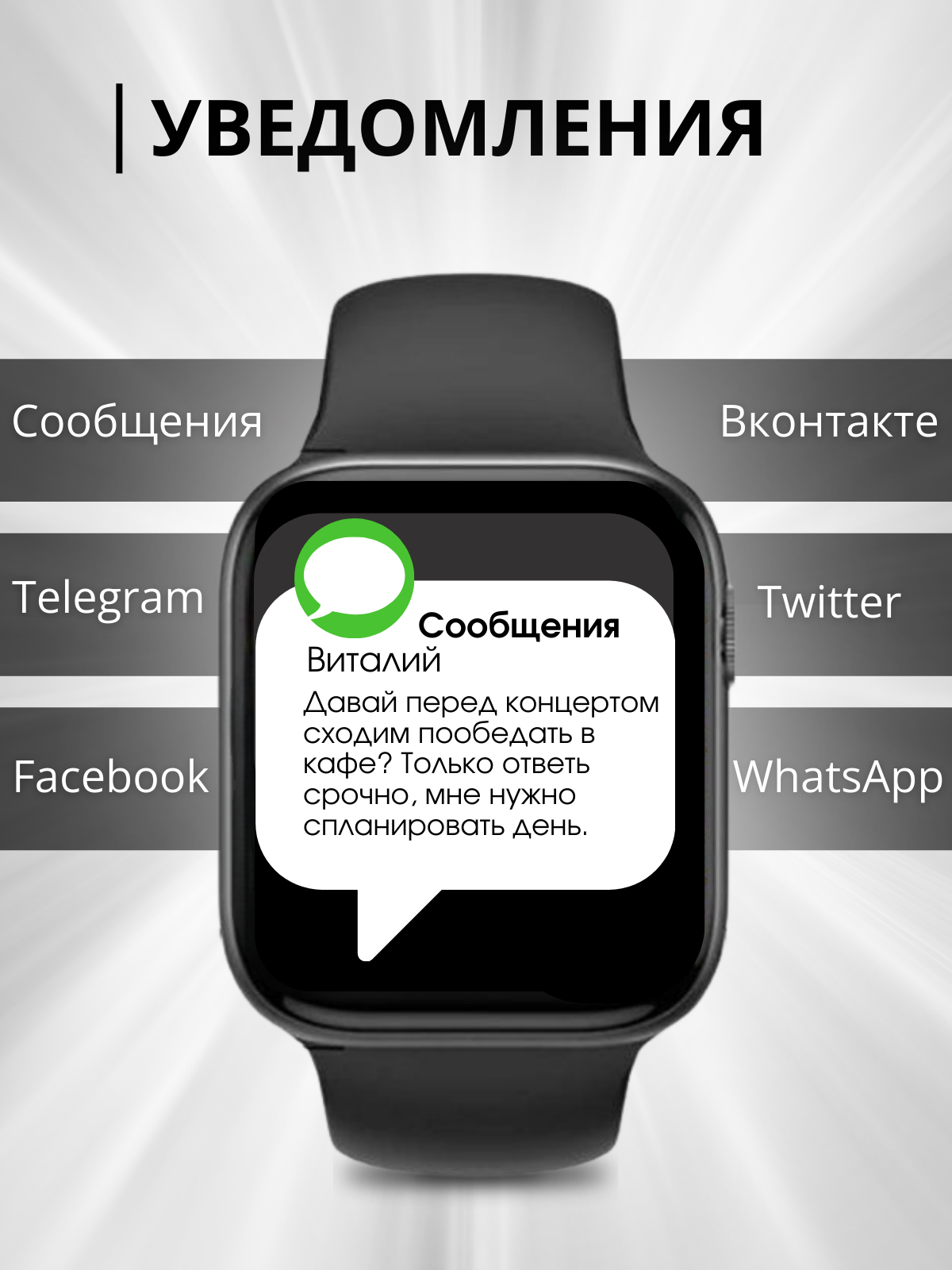 Смарт часы и фитнес браслеты Умные часы Smart Watch 9 серии, смарт часы, фитнес браслет, шагомер, электронные часы, спортивные, унисекс, Bluetooth, 45mm, Черные