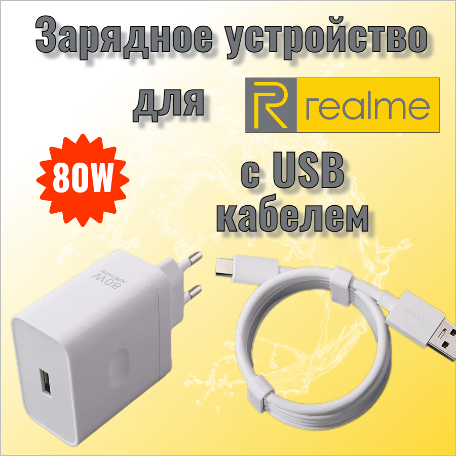 Зарядки для гаджетов Сетевое зарядное устройство для Realme SUPER DART (VCB8JAEH) 80W с кабелем USB -Type-C