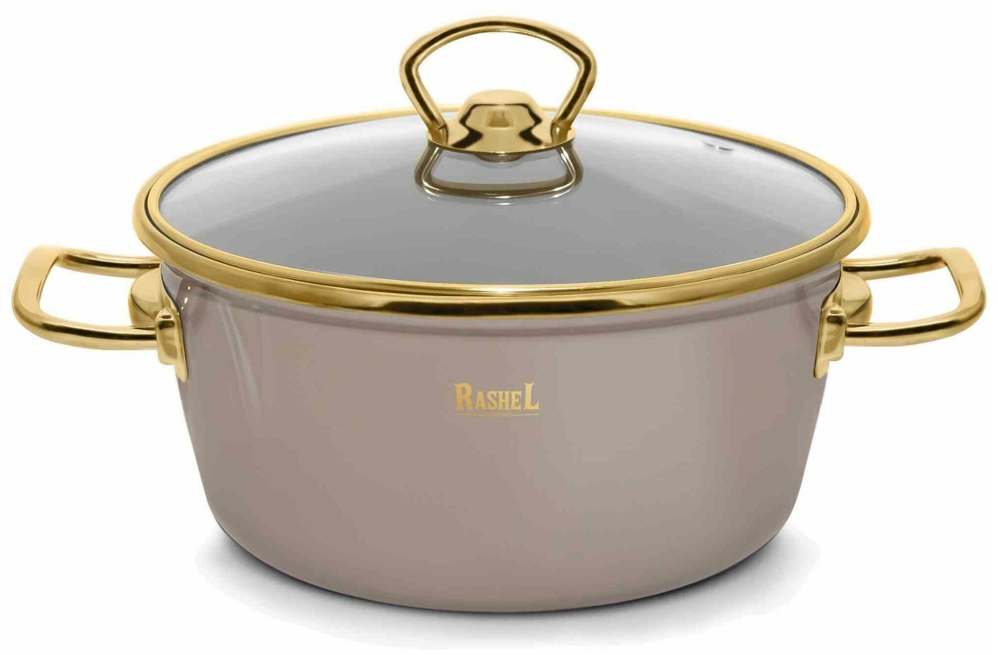Кастрюля Rashel Grand R0820 2,6л эмаль, ст.крышка, ручка золото; графитовый