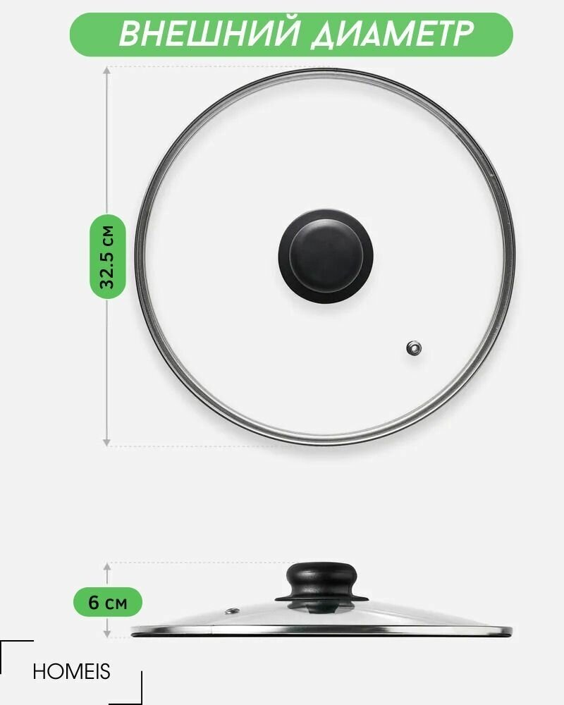 Кастрюли Крышка стеклянная для сковороды и кастрюли 32 см,крышка 32 см,с пароотводом,крышка 32 см с металлическим ободком