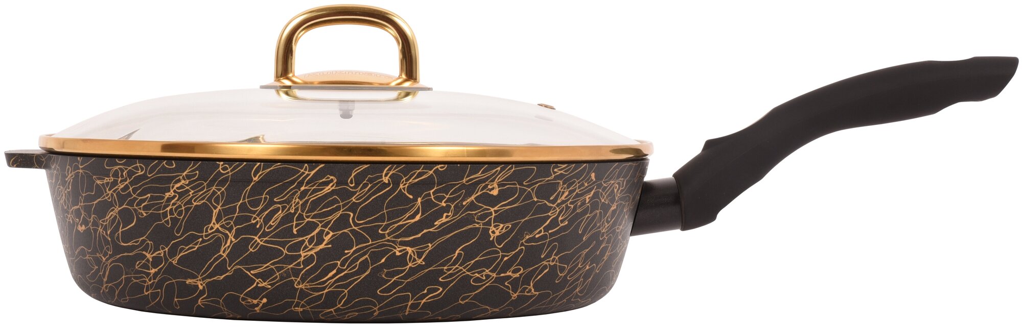 Сковорода Kukmara Грация антиприграрная литая 24см, стеклянная крышка черный/золото (сгчз241а)