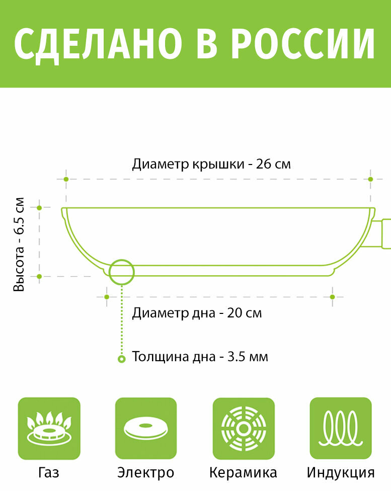 Кастрюли Сковорода 26см с крышкой ТМ традиция Гранит плюс индукция каменное покрытие, Россия + Лопатка в подарок