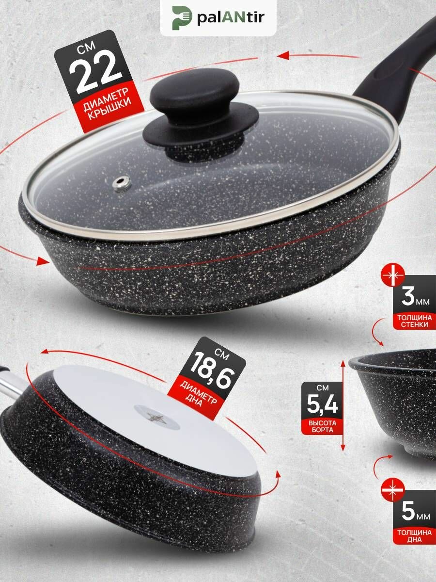 Сковородки PALANTIR Сковорода глубокая тяжелая антипригарная с крышкой 22 см