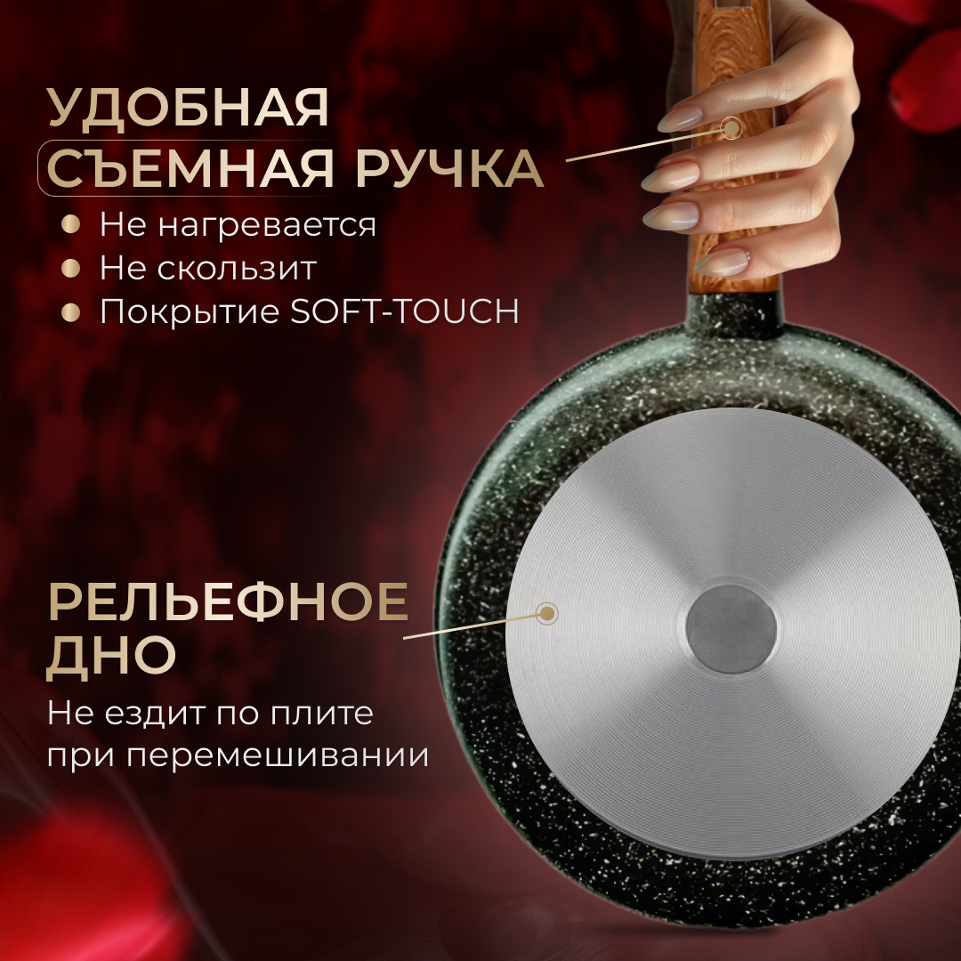 Сковородки Сковорода с антипригарным покрытием 28 см с крышкой и съёмной ручкой , сковородка глубокая литой алюминий