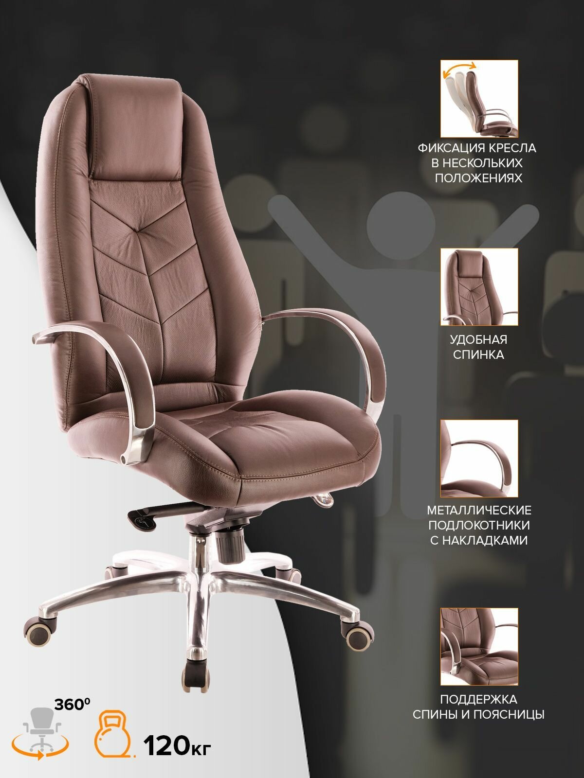 Кресло для руководителя Drift Lux M, коричневое, натуральная кожа, EP-drift al leather brown