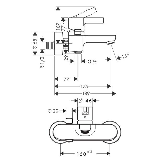 Смеситель для ванны hansgrohe Metris S внешнего монтажа 31460000, хром