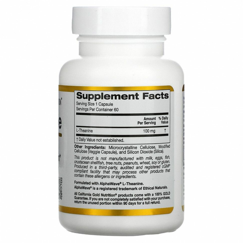 Аминокислоты L-Theanine, AlphaWave, 100 mg, 60 капсул