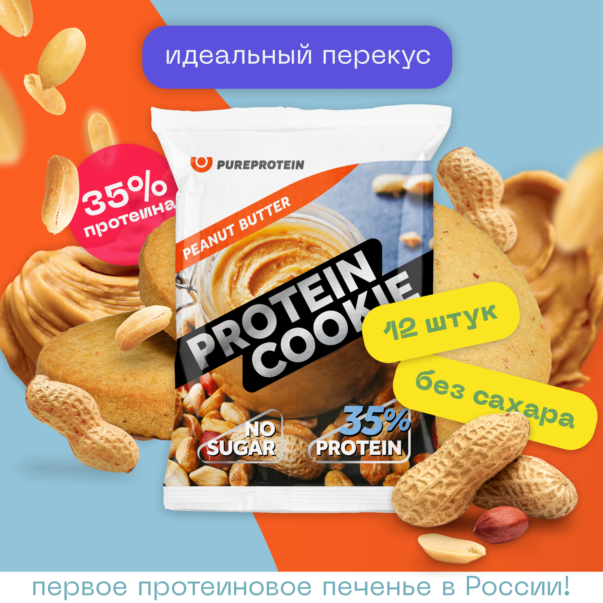 Протеины Протеиновое печенье 35% белка Арахисовое масло PureProtein, десерт без сахара пп сладость, спортивное печенье, 14шт по 40г