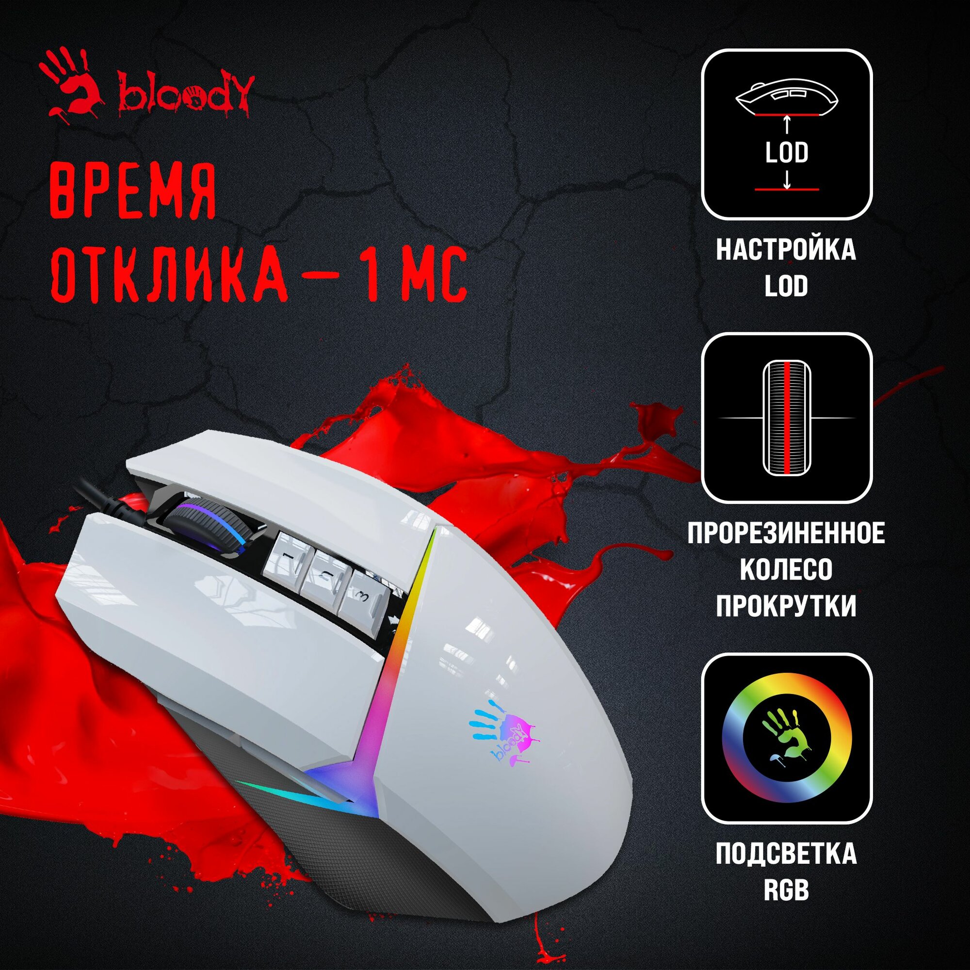Игровая мышь проводная A4Tech Bloody W60 Max, 10 кнопок, подсветка, 10000 dpi, Max Gun