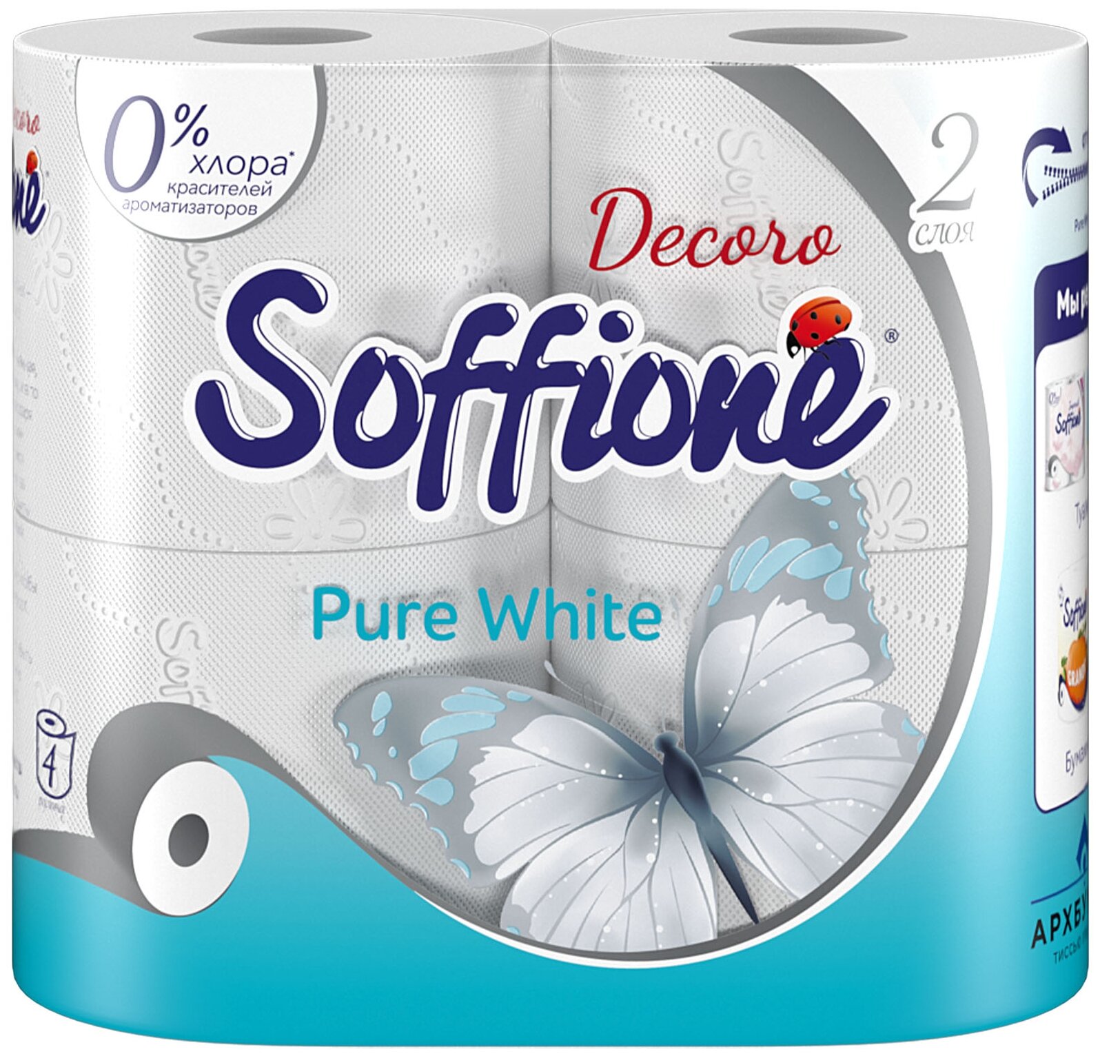 Туалетная бумага Soffione Pure White белая двухслойная 8 рул.