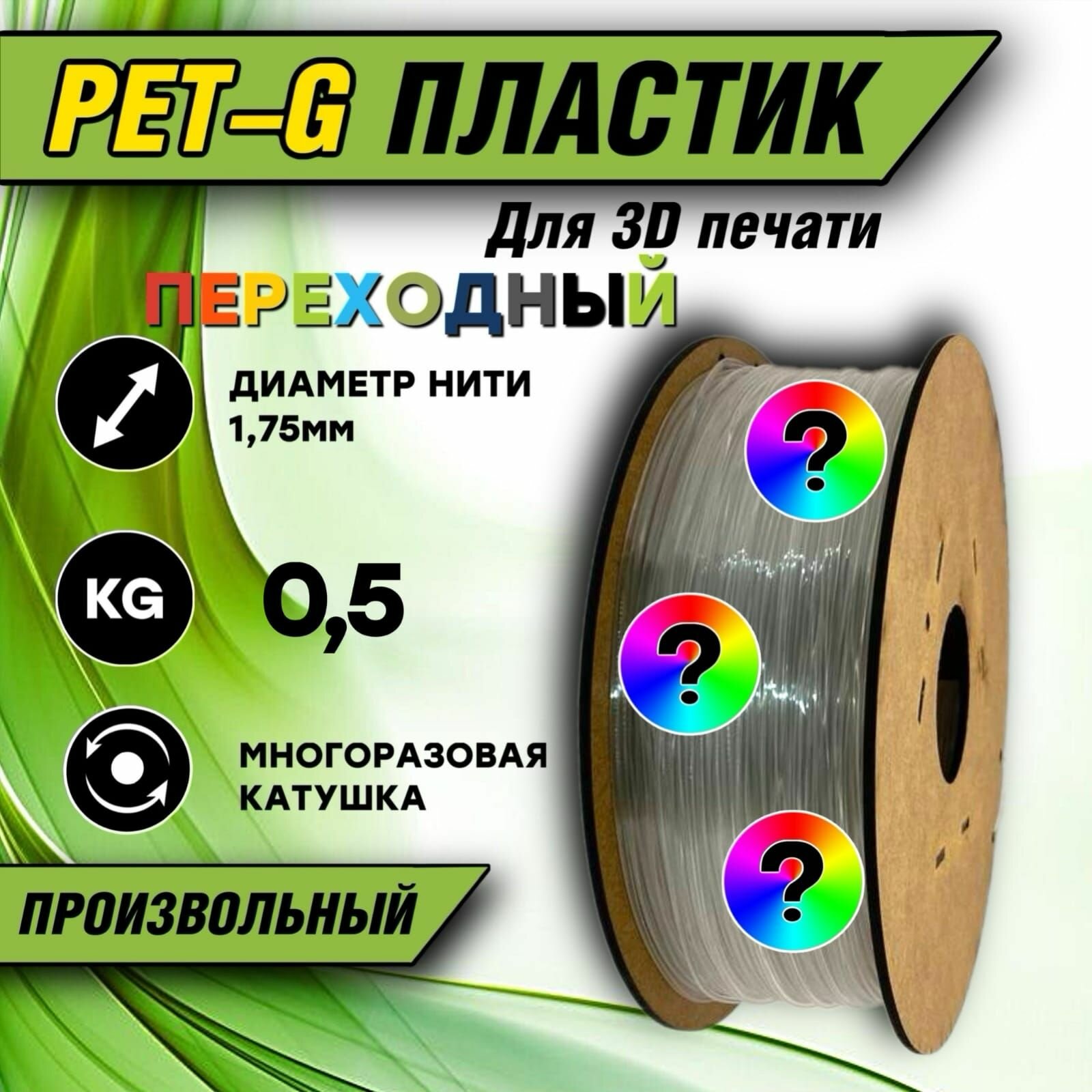 Пластик для 3D печати Пластик для 3d принтера PETG 1.75 "Переходный", 0,5 кг.