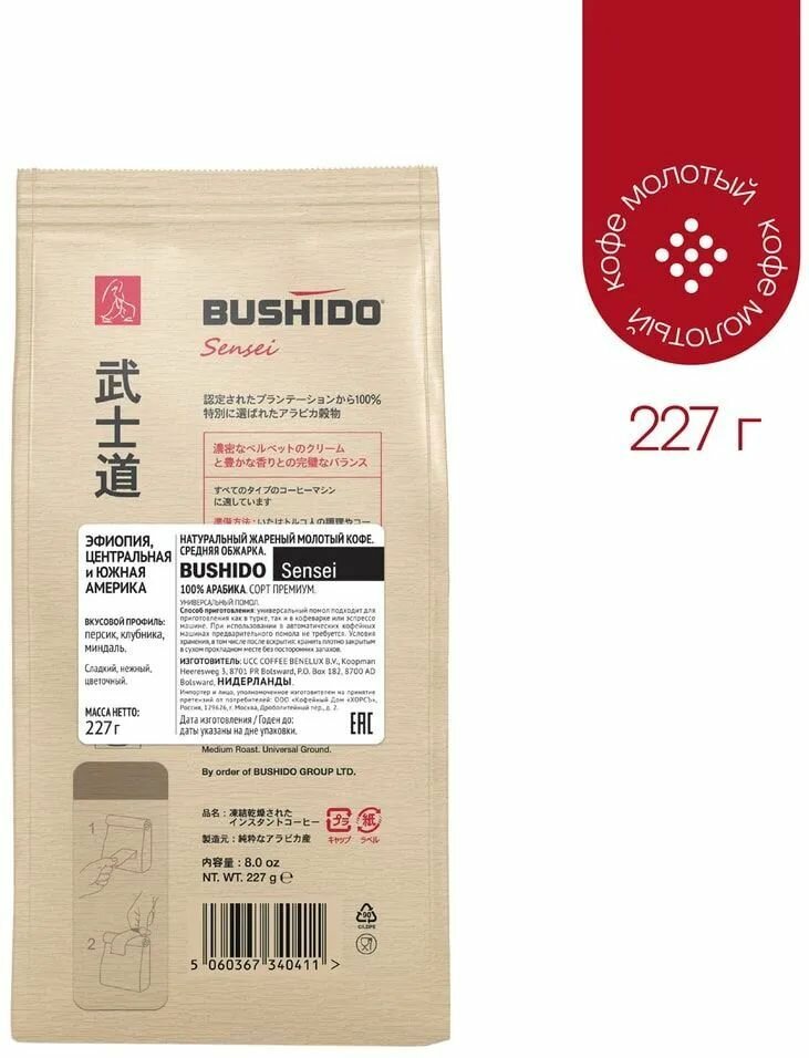Кофе молотый Bushido Sensei, 227 г, вакуумная упаковка