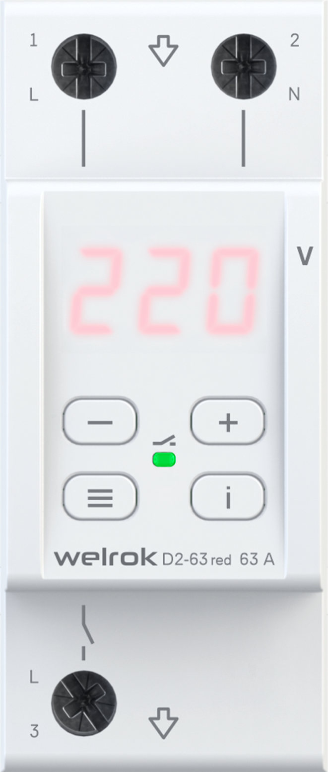 Реле напряжения Welrok D2-63 red